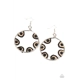 Black and Iced Coffee seed beads are threaded on wire and looped over black stones on the inside of a spacious silver hoop. The pattern makes its way around the inside of the circle for an around-the-world air. Earring attaches to a standard fishhook fitting.