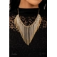 Seemingly separated by dainty gold beads, shimmery strands of white rhinestones majestically morph into gold rectangular frames along a sleekly rounded snake chain. The glamorously golden getup stacks into timelessly tapered tassels, creating a flauntable fringe below the collar. Features an adjustable clasp closure.