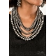 Dipped in a metallic shimmer, a collision of a faceted hematite and crystal-like beading drapes across the chest for a spellbinding look. Held together by two silver fittings, the strands gradually increase in size as they trickle down the chest in a fearless finish. Features an adjustable clasp closure.