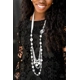A silky ivory ribbon replaces a traditional chain to create an elegant look. Pearly ivory beads and funky silver pieces intermix with varying lengths of silver chains to give a fresh take on a Victorian-inspired piece.