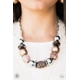 Warm beads in shades of brown and copper with reflective faceted edges and varying glazed finishes are offset by two shiny silver beads. An oblong bead studded with copper-toned rhinestones adds a dramatic accent. Features an adjustable clasp closure.