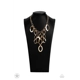 Large gold links and shimmering textured gold rings cascade below a gold chain freely, allowing for movement that makes a bold statement. Features an adjustable clasp closure.