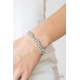 Featuring glistening silver fittings, strands of glittery white rhinestones delicately braid around the wrist for a glamorously layered look. Features an adjustable clasp closure.