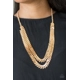 Glistening gold discs are folded in half and linked into two shimmery layers across the chest for an edgy industrial look. Features an adjustable clasp closure.