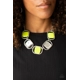 Featuring regal cuts, faceted white gems and Green Sheen beads are pressed into the centers of rope-like silver frames that triple link below the collar for a dramatic pop of color. Features an adjustable clasp closure.