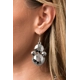 An oversized collection of smoky hematite rhinestones haphazardly link into clustered frames below the collar. Featuring swirls of dainty hematite encrusted frames, the stunningly stacked frames fan out into a flammable sparkle below the collar. Features an adjustable clasp closure.