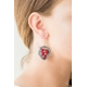 Varying in size, polished red beads are sprinkled across the center of an asymmetrical heart-shaped frame for a whimsical look. Earring attaches to a standard fishhook fitting.