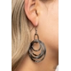 Gradually increasing in size, a shimmery collection of hammered gunmetal rings are threaded through the center of a gunmetal oval fitting, creating a dizzying lure. Earring attaches to a standard fishhook fitting.
