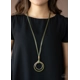 Shiny green cording knots around a pair of silver and gold hoops, creating a stacked pendant. Green suede wraps around the bottom of the gold hoop, adding an earthy flair to the seasonal display. Features an adjustable clasp closure.