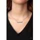 A colorful collection of glittery rhinestones gradually fade from light blue to royal blue across the front of a dainty silver frame, creating a chic ombre infused pendant below the collar. Features an adjustable clasp closure.