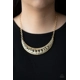 Varying in size, row after row of smoky hematite rhinestones are encrusted along the front of a studded half moon gold frame, creating a glittery statement below the collar. Features an adjustable clasp closure.