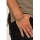 Infused with decorative copper fittings, antiqued copper bars thickly weave into a bold industrial cuff around the wrist.