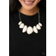Robust white stones are pressed into asymmetrical silver frames, coalescing into a bold pendant below the collar. Features an adjustable clasp closure.