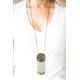 Stamped in a decorative floral pattern, an imperfect brass disc swings from the bottom of a lengthened brass chain. Brass chains and hammered brass beads stream from the bottom of the rustic pendant, creating a flirty fringe. Features an adjustable clasp closure.