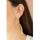 Brushed in a high-sheen finish, a gold oval frame swings from the ear for a casual fashion. Earring attaches to a standard fishhook fitting.