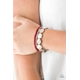 Mismatched silver and red beads and round silver accents are threaded along stretchy bands, creating colorful layers around the wrist.