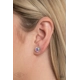 A glassy opalescent rhinestone is nestled inside of a shimmery silver frame for a timeless look. Earring attaches to a standard post fitting.