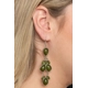 Encased in sleek silver fittings, a glassy collection of marquise and teardrop Military Olive beads delicately connect into a dramatically colorful lure. Earring attaches to a standard fishhook fitting.
