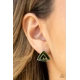 Painted in an earthy green finish, a triangular silver frame folds into a dainty frame for a trendy look. Earring attaches to a standard post fitting.