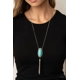 An oval turquoise stone is pressed into a glistening silver frame stamped in antiqued tribal inspired patterns. A shimmery silver chain tassel swings from the bottom of the earthy pendant for a whimsical finish. Features an adjustable clasp closure.