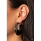 Two flat gunmetal crescent frames delicately connect into a hollowed out hoop for a dramatic finish. Earring attaches to a standard post fitting. Hoop measures approximately 2 3/4" in diameter.