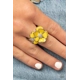 Painted in a sunny yellow finish, colorful petals gather around a white rhinestone encrusted center for a whimsically flowering look atop the finger. Features a stretchy band for a flexible fit.