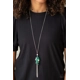 A fabulous collision of Ultramarine Green crystal-like beads, white rhinestones, white pearls, and ornate silver beads delicately cluster at the bottom of a lengthened silver chain for a colorfully vintage look. A silver chain tassel swings from the bottom of the display, adding a flirtatious movement to the whimsical piece. Features an adjustable clasp closure.