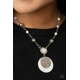 A dainty collection of ornate silver beads and white stone beads dot a dainty silver chain, giving way to a hammered silver ring featuring a shell-like center. A hammered silver disc and white shell-like disc swing from the bottom, creating a summery pendant. Features an adjustable clasp closure.