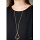 Dainty white rhinestones collect at the bottom of a triple stacked shiny copper teardrop, creating an elegantly refined pendant at the bottom of a lengthened shiny copper chain. Features an adjustable clasp closure.