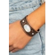 Embossed in whimsical floral and desert inspired details, a thick copper cuff is dotted in opalescent beads for an ethereal look around the wrist.