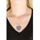Filled with vine-like filigree detail, a silver heart pendant swings below the collar for a vintage inspired look. Features an adjustable clasp closure.