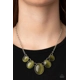 Gradually increasing in size, a dainty collection of glowing Military Olive cat's eye oval stones delicately link below the collar for a whimsical pop of color. Features an adjustable clasp closure.