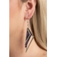 Featuring an abstract pattern, a purple acrylic triangle is suspended between two shimmery silver triangular frames, creating a colorfully edgy lure. Earring attaches to a standard fishhook fitting.