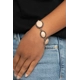 A collection of earthy brown oval stones are pressed into studded silver frames that delicately link across the wrist for a colorfully rustic look. Features an adjustable clasp closure.
