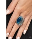 Dotted with a dainty white rhinestone center, a leafy floral frame climbs the side of a glassy blue bead for an enchanted look. Features a stretchy band for a flexible fit.