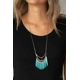 Capped in dainty silver fittings, refreshing turquoise stone tusk-like bars dangle from the bottom of an airy silver crescent frame, creating an earthy fringe at the bottom of a lengthened silver chain. Features an adjustable clasp closure.