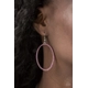 Encrusted in glassy pink rhinestones, an airy silver hoop swings from the ear for a refined fashion. Earring attaches to a standard fishhook fitting.