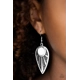 A polished white bead is pressed into the top of an ornate silver teardrop radiating with studded textures for a tribal inspired look. Earring attaches to a standard fishhook fitting.