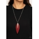 Pinched between a hammered silver fitting, a leaf shaped Samba leather frame is spliced into feathery detail at the bottom of a lengthened silver chain for a free-spirited look. Features an adjustable clasp closure.