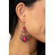 Dotted with round and teardrop pink beads, a stacked silver frame radiating with studded and linear detail swings from the ear for a colorfully regal look. Earring attaches to standard fishhook fitting.