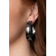 Featuring a beveled surface, a hammered gunmetal bar delicately curls into an edgy hoop. Earring attaches to a standard post fitting. Hoop measures approximately 2" in diameter.