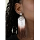 Gradually fading from white to brown, shiny cording streams from the bottom of hammered silver frames, creating a colorful fringe. Earring attaches to a standard post fitting.