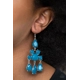 A dewy collection of glassy round and teardrop blue gems delicately connect into an elegant chandelier. Earring attaches to a standard fishhook fitting.