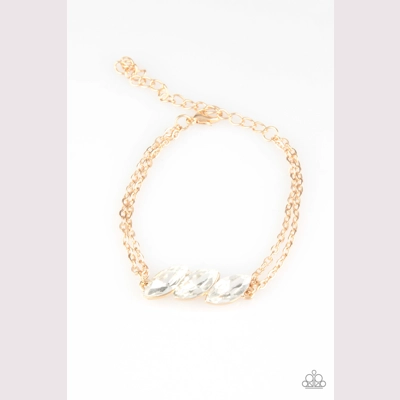 Featuring regal marquise-cuts, a trio of glittery white rhinestones join across the center of the wrist for a timeless look. Features an adjustable clasp closure.