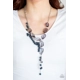 Featuring an array of shapes and cuts, a collection of faceted smoky gems link below the collar for a glamorous shimmer. A shimmery silver strand of pearly blue beads trickles down one side of the piece, creating a flirtatious extended pendant. Features an adjustable clasp closure.