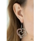 Two shimmery silver hearts delicately overlap into a romantic frame. The edge of the largest heart is encrusted in a section of flirty pink rhinestones for a colorfully charming finish. Earring attaches to a standard fishhook fitting.