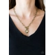 Cut into a whimsical heart shape, a glittery golden gem swings from the bottom of a glistening brass chain below the collar for a charming look. Features a toggle closure.