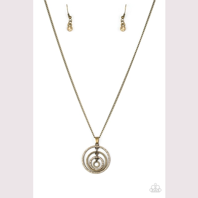 Encrusted in dainty topaz rhinestones, glittery circular frames alternate with antiqued brass frames, creating a dizzying pendant. The sparkling pendant swings from the bottom of a classic brass chain below the collar for a sophisticated fashion. Features an adjustable clasp closure.