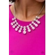 Glittery stacks of glassy white rhinestones gradually increase in size as they drip from the bottom of a classic silver chain, creating a blinding fringe that fans out below the collar. Features an adjustable clasp closure.