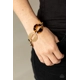 Featuring airy circular shapes, hammered gold frames link with brown tortoise shell acrylic frames around the wrist for a colorfully retro look. Features an adjustable clasp closure.